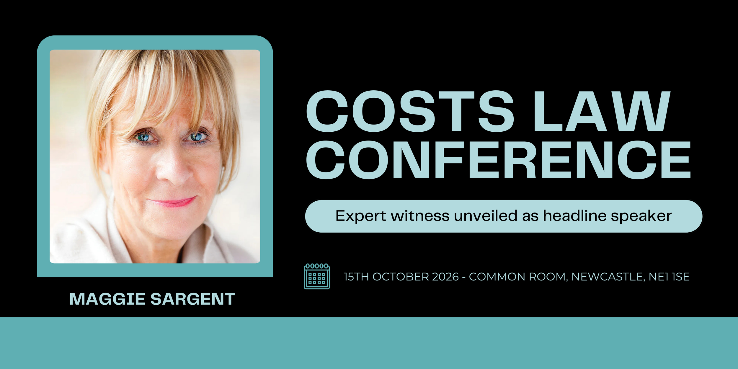 AWARD-WINNING expert witness and brain injury specialist Maggie Sargent has agreed to be the headline speaker at our 2026 Costs Law Conference in Newcastle later this year.